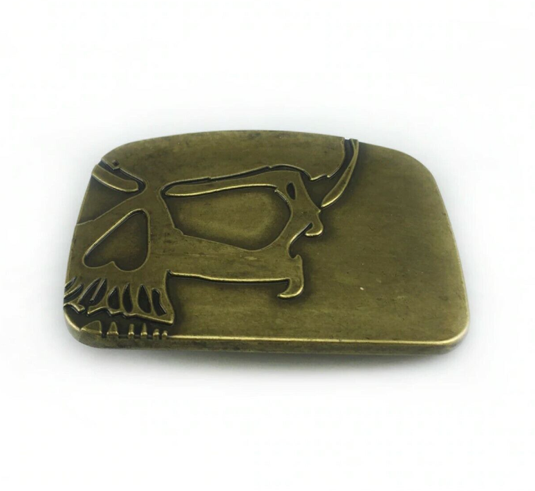 Gürtelschnalle Buckle für Gürtel bis 4 cm Metall Skull Biker Totenkopf messing