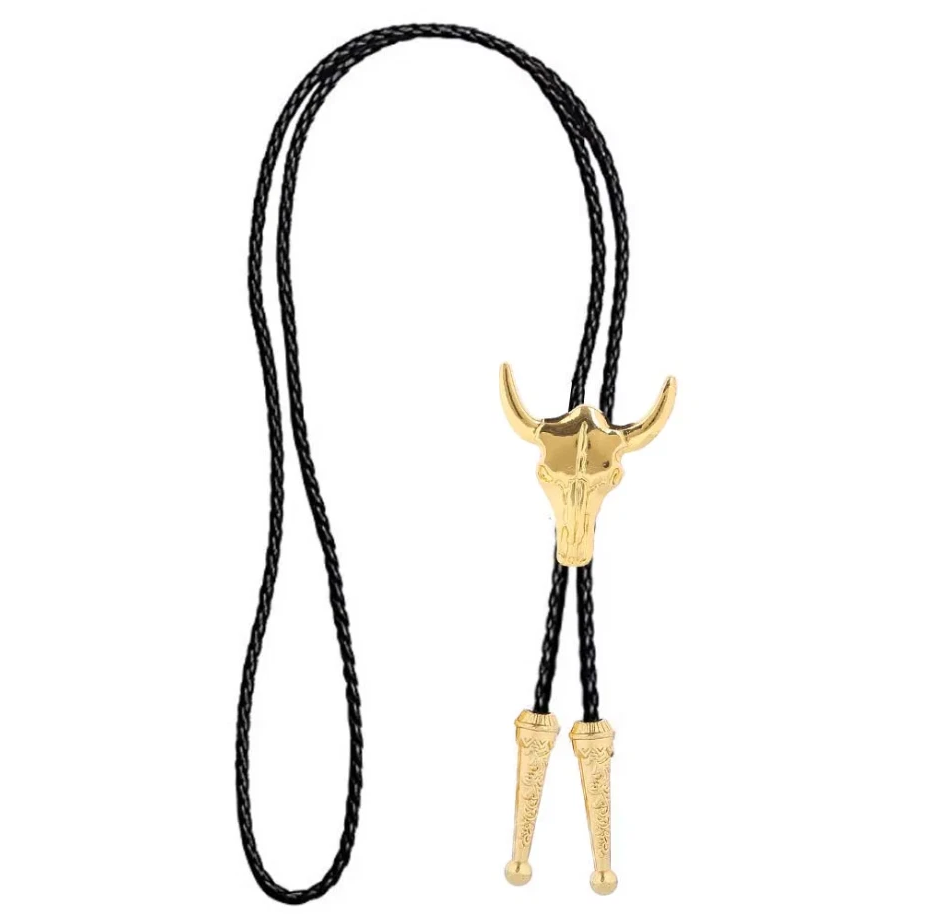 Western Bolo Tie „Golden Longhorn“ – Krawatte Texas Rodeo Indianer Style