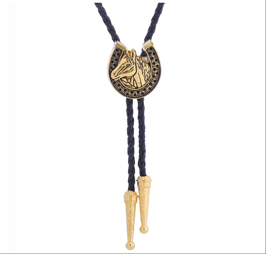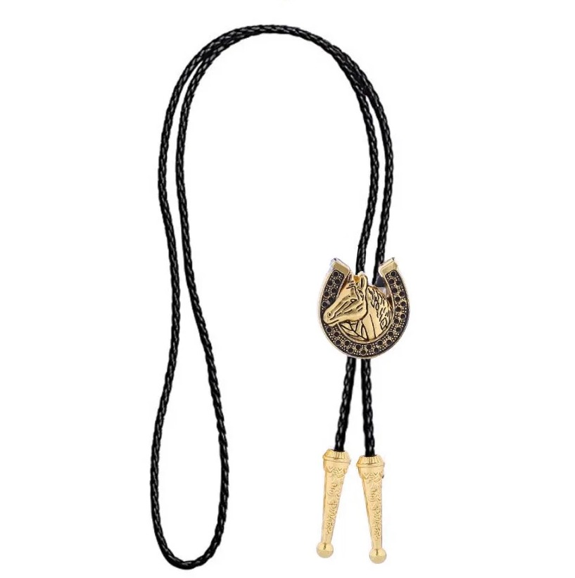 Western Bolo Tie „Golden Lucky Horse“ – Krawatte Texas Rodeo Indianer Style